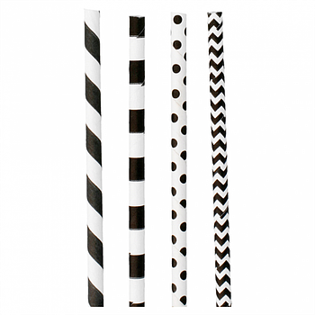 Palhinhas Papel Pretas Riscas E Bolinhas Ø 0,60X20Cm 200