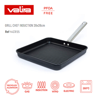 Grelhador Canelado 28X28Cm Indução Chef Valira