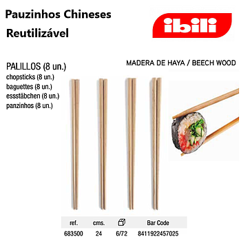 Pauzinhos Chineses 8 Unidades Mad. De Faia 24Cm Ibili