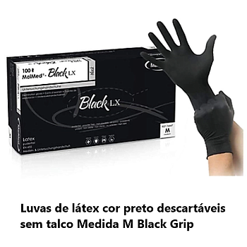 Luva Látex Preta Descartáveis S/Talco Tam.-M Black Grip 100U