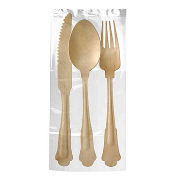 Conj.Garfo, Faca, Colher+Guardanapo Madeira 20Cm