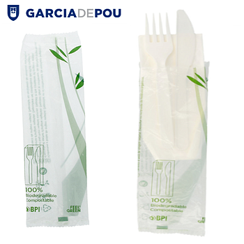 Embalagem Faca+Garfo+Guardanapo Branco Pla 18Cm 100 Unid.