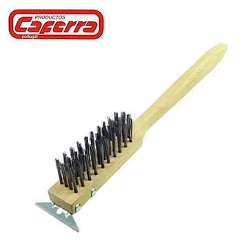 Escova Limpa Grelhas Em Madeira C/Raspador Aço 50Cm