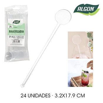 Agitador Bebidas Plastico Transp.Algony 24 Unid Algon
