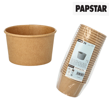 25 Tigelas Redondas De Cartão Castanho 230Ml Ø 9,8X6Cm